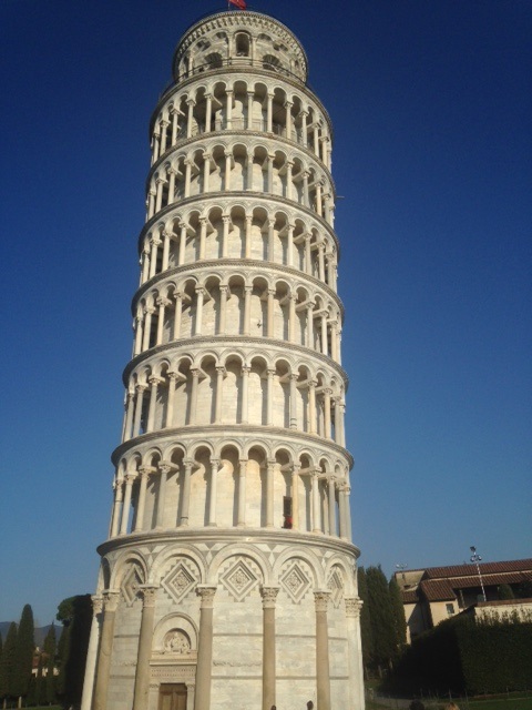 斜塔は思っていたよりも傾いているので、驚きます。もう何百年もこの状態なのです。もちろん今は地盤の補強もされていますが、イタリアも地震が多いので、この先いつかは倒れてしまうのではないかと思うと、今この不均衡で美しい姿を目に焼き付けておかなくては!と思うのです。